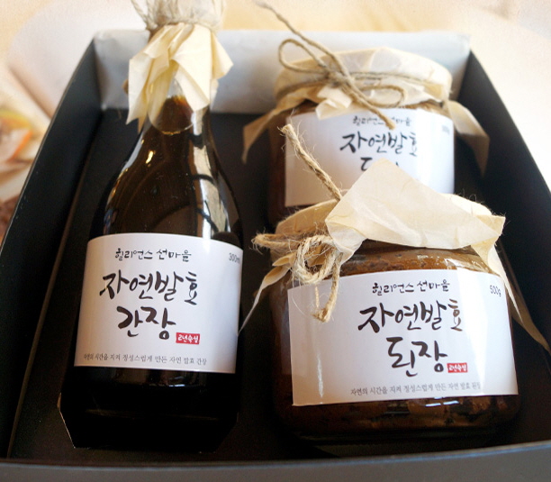 힐리언스 선마을 발효식품인 된장과 간장은 생산자 실명제 품질관리로 100% 국내산 친환경 인증을 획득한 콩을 재료로 방부제, 색소, 인공 조미료 등의 첨가물이 일체 없이 메주와 6년간 충분히 간수를 뺀 신안 천일염만을 사용했다.