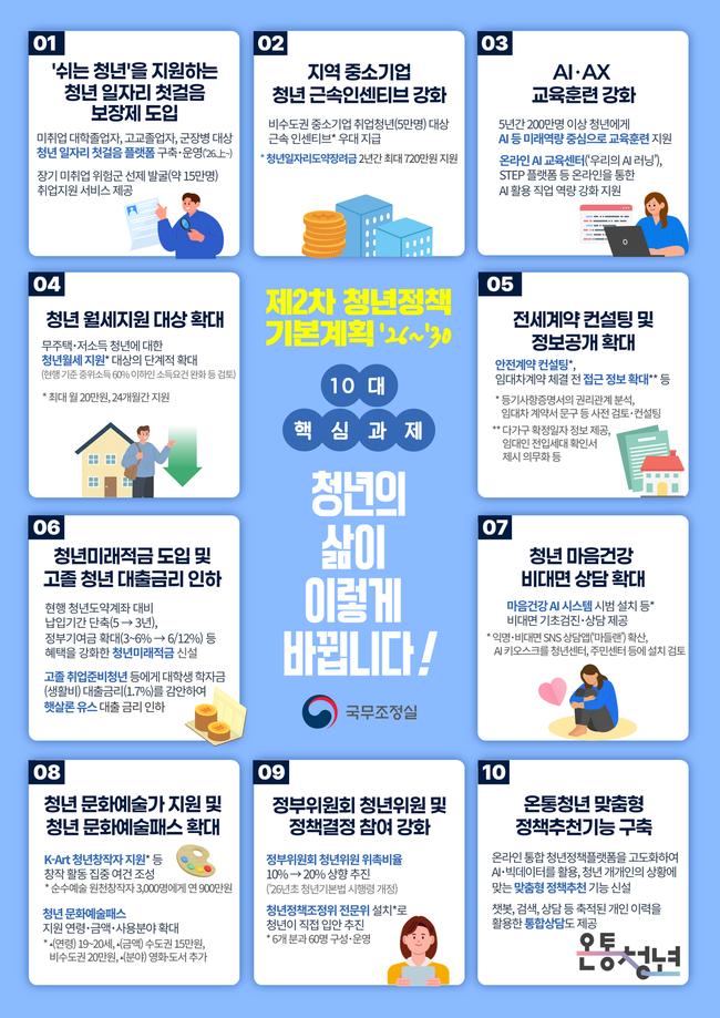 제2차 청년정책 기본계획(`26~`30) 10대 핵심과제